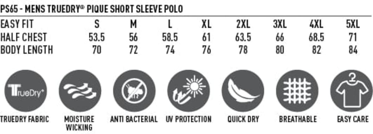 - Material: TrueDry® cotton-blended pique (60% cotton, 40% polyester) for soft, breathable comfort.